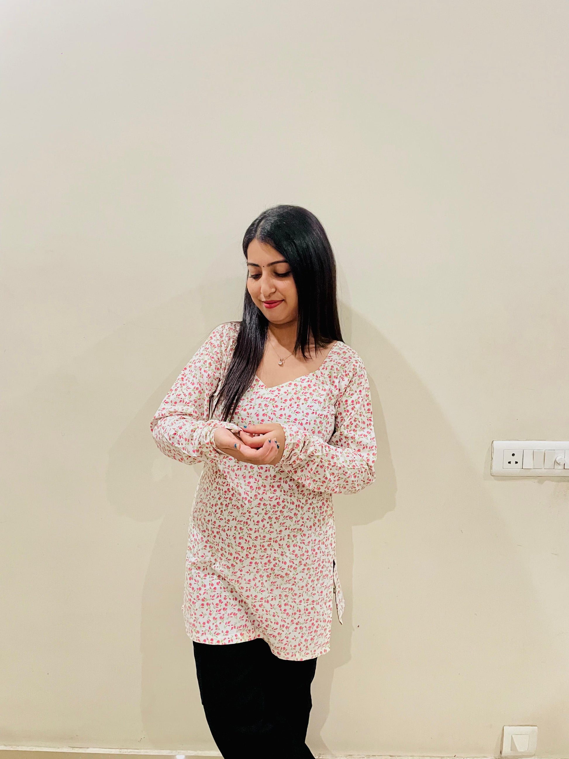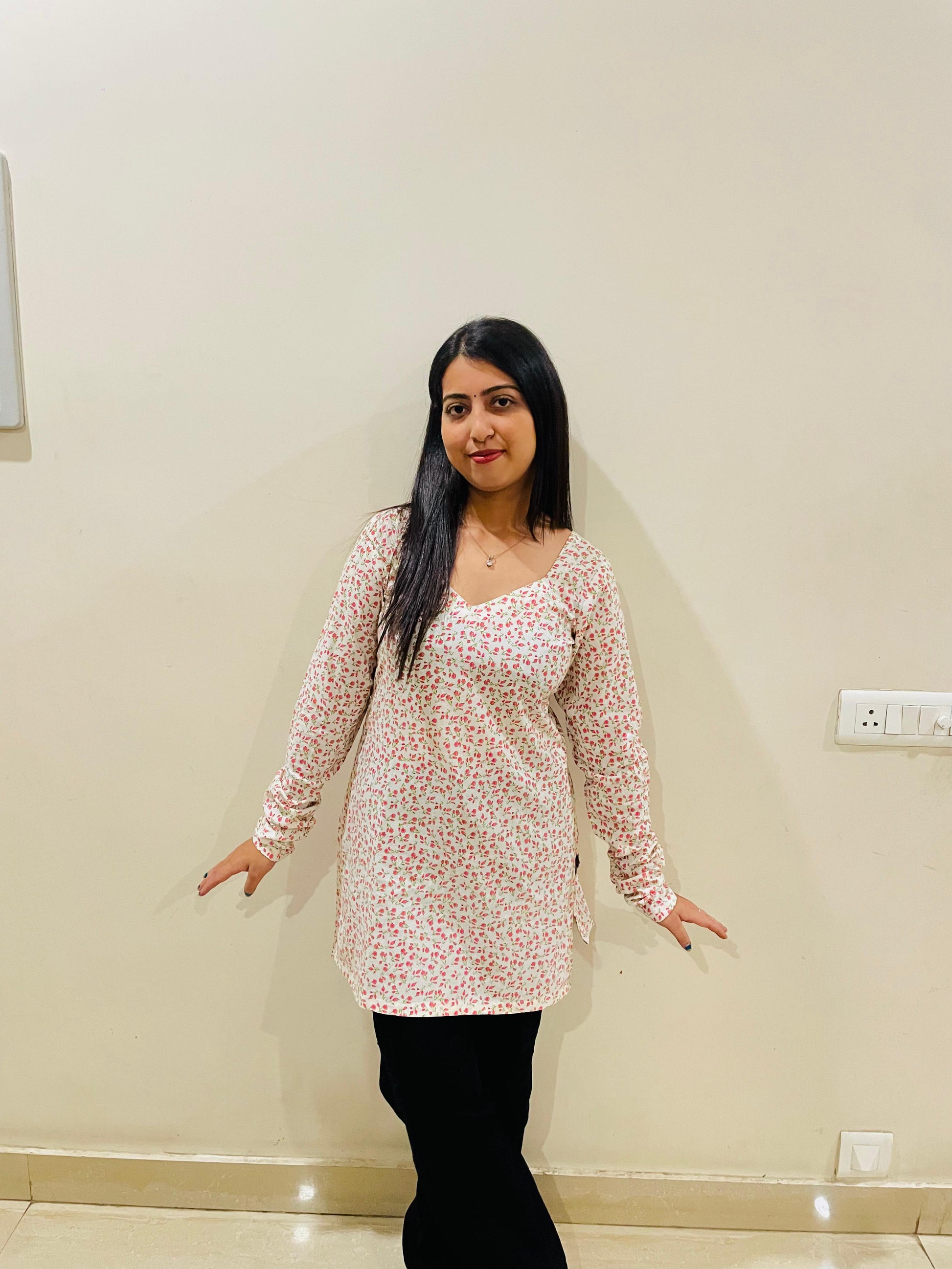 Flattering Silhouette: Designed in a straight-fit short tunic/kurti style that falls neatly above the knee, offering a modern and comfortable fit.